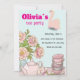Organisez une fête charmante avec cette invitation d'anniversaire à la fête du thé Dino fantaisiste, parfaite pour les filles qui aiment les dinosaures et l'heure du thé déguisée ! Avec un dinosaure rose pastel avec un nœud mignon, des florales aquarelles délicates, des tasses à thé empilées et un service à thé sucré — ce design allie plaisir préhistorique et ambiance élégante de fête du thé.