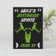 Invitation d'anniversaire pour garçon avec scooter de trick . ©Copyright HGIFY Magasins uniquement. Tous droits réservés. Ajoutez le nom du garçon, la date de la fête, l'adresse et l'heure de la fête et le numéro de téléphone de contact pour RSVP.
