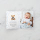 Célébrez le premier anniversaire de votre petit garçon avec cette adorable invitation d'anniversaire Beary First. Caractérisé par un ours en peluche à l'aquarelle tenant des ballons bleus avec un nœud à carreaux assorti, ce design est parfait pour la première fête d'anniversaire d'un bébé garçon. Les tons bleus et beige créent une atmosphère douce et charmante. Personnalisez facilement tout le texte pour votre événement — parfait pour une utilisation numérique ou impression