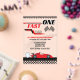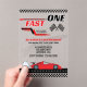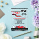 Célébrez le cap de votre petit pilote avec cette invitation de 1er anniversaire de voiture de course énergique et amusante Fast One. Conçue avec une voiture de course rouge audacieuse, des drapeaux à damier classiques et des détails de course ludiques, cette invitation est parfaite pour la fête du premier anniversaire d'un garçon ou une célébration sur le thème des voitures.