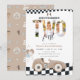 Invitation pour les 2 ans de course de voiture vintage, Invitation de deuxième anniversaire garçon beige voiture de course deux rapide avec photo