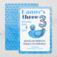 Faire une Invitation d'anniversaire pour 3 ans avec un Canard en Caoutchouc "Make a Splash". Cette adorable illustration de canard en caoutchouc est parfaite pour la fête d'anniversaire des trois ans de votre petit bout. Sortez les baignoires, les seaux, la table à eau ou la piscine pour enfants et ajoutez de l'eau. Achetez des canards en caoutchouc. Laissez votre petit faire des éclaboussures.