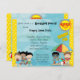 Un groupe de 5 enfants s'amusant en plein air et profitant de la plage agrémentée d'un arrière - plan coloré orne le devant de cette invitation. Un grand nombre de textes personnalisables sur le devant pour toutes les informations de votre fête! Texte personnalisable à l'arrière pour les directions de route ou toute autre information que vous pourriez vouloir ajouter.Économisez en commandant en quantité !
