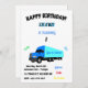 Invitation d'anniversaire "Eighteen Wheeler" avec le nom personnalisé et l'âge célébrant le plaisir, les jeux, gâteau et crème glacée.