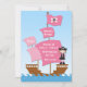 Une jolie invitation à la fête d'anniversaire pour les filles à thème pirate. Le design comprend un navire avec des voiles roses et un drapeau avec un crâne et des os croisés et une jolie fille pirate avec des vagues de l'océan. quelques graphiques ©Riefka Designs