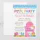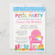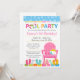 Invitation d'anniversaire pour une fête au bord de la piscine en rose, vert et bleu