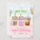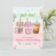 Préparez-vous à faire la fête avec style avec notre invitation d'anniversaire pour une fête de thé aux perles ! Cette invitation charmante est ornée d'illustrations fantaisistes de thé aux bulles qui sont sûres de ravir. C'est l'invitation parfaite pour étonner vos invités et remplir votre enfant d'excitation, promettant une célébration d'anniversaire aussi douce et mémorable qu'une gorgée de leur thé aux bulles préféré.