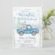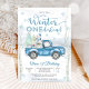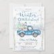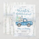 Célébrez le jour spécial de vos petits avec cette charmante invitation d'anniversaire Winter ONEderland. Avec une scène forestière enneigée comprenant des bouleaux, des flocons de neige et un vieux camion bleu transportant des cadeaux et un bonhomme de neige, ce design capture parfaitement la magie d'une célébration hivernale. Des polices élégantes en bleu givré et blanc ajoutent une touche festive, ce qui la rend idéale pour une première fête d'anniversaire. Personnalisez-la facilement avec les détails de votre événement et créez un souvenir que vos invités adoreront.