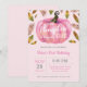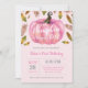 Invitation d'anniversaire premier de citrouille. Rose et gris. Feuilles de citrouille aquarelle. Invitation de fête d'anniversaire de fille. 1er 2e 3e 4e 5e 6e 7e 8e 9e 10e, tous âges. Pour une personnalisation plus poussée, veuillez cliquer sur le bouton "Personnaliser" et utiliser notre outil de conception pour modifier ce modèle.