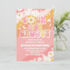 Célébrez la journée spéciale de vos petits avec cette invitation d'anniversaire rétro et funky ! Avec des rayures ondulées ludiques en rose, orange et pêche, accompagnées de marguerites, de cœurs, de papillons et de signes de paix, ce design capture l'esprit amusant des années 70. Parfait pour les fêtes d'enfants, cette invitation personnalisable ajoute une touche colorée et nostalgique tout en gardant les détails clairs et engageants. Rendez l'anniversaire de votre enfant inoubliable avec ce souvenir vibrant inspiré des hippies.