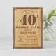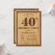 Invitation d'anniversaire rustique 40 ans Bois vin