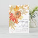 Belle invitation d'anniversaire de fête automnale avec des feuilles et des citrouilles à l'aquarelle et un dos en bois assorti.