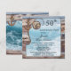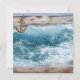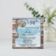 Une invitation de fête d'anniversaire sur le thème nautique avec des vagues océaniques encadrées par du bois vieilli rustique, une ancre et un nœud noué en forme de cœur.