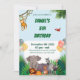 Faites de l'anniversaire de votre petit une journée encore plus sauvage avec cette adorable invitation d'anniversaire Safari Jungle Animal ! Avec des animaux de safari mignons comme des lions, des éléphants, des girafes et des singes dans un thème de jungle ludique, cette invitation est parfaite pour les fêtes d'anniversaire des enfants. Personnalisez-la avec les détails de votre fête et préparez-vous à une aventure de jungle amusante !