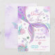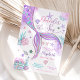 Faites des éclaboussures avec cette invitation de premier anniversaire fantaisiste sur le thème de la sirène ! Avec une queue de sirène scintillante en violet, rose et turquoise entourée de coquillages, d'étoiles de mer, de corail et de bulles, ce design inspiré de l'océan est parfait pour une célébration magique sous la mer. Les accents pastel et les détails ludiques créent un look festif et enchanteur que les invités adoreront. Idéale pour les premiers anniversaires de filles, cette invitation personnalisable donne le ton pour une fête inoubliable.