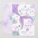 Faites des éclaboussures avec cette invitation pour un premier anniversaire sur le thème des sirènes ! Avec une queue de sirène scintillante dans des tons pastel de violet, de rose et de turquoise, entourée de coquillages, de corail et de bulles, ce design capture la magie d'une célébration sous-marine. Parfait pour les fêtes inspirées de l'océan, cette invitation personnalisable donne le ton pour une journée amusante et enchanteresse. Les invités adoreront les détails charmants et les couleurs vives qui rendent cette carte vraiment inoubliable.