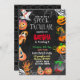 Invitation à l'anniversaire d'Halloween taculaire Spook-tacular thème d'halloween carte d'invitation de fête de fille d'anniversaire avec l'illustration d'un citrouille, fantômes et toiles d'araignée.