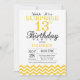 Invitation d'anniversaire surprise 13 ans avec Chevron jaune. Noir et blanc. Anniversaire d'enfant. Invitation d'anniversaire pour garçon ou fille. Pour une personnalisation plus poussée, veuillez cliquer sur le bouton "Personnaliser" et utiliser notre outil de conception pour modifier ce modèle.