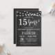 Fond de tableau noir d'invitation d'anniversaire surprise 15 ans avec guirlandes lumineuses. Noir et blanc. 13e 15e 16e 18e 20e 21e 30e 40e 50e 60e 70e 80e 90e 100e, Tout âge. Anniversaire adulte. Anniversaire homme ou femme. Pour une personnalisation supplémentaire, veuillez cliquer sur le bouton "Personnaliser" et utiliser notre outil de conception pour modifier ce modèle.