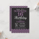 Invitation d'anniversaire surprise 16 ans avec Chevron noir et violet. Tableau noir. Anniversaire d'enfant. Invitation d'anniversaire pour garçon ou fille. Pour une personnalisation plus poussée, veuillez cliquer sur le bouton "Personnaliser" et utiliser notre outil de conception pour modifier ce modèle.