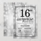 Invitation d'anniversaire surprise 16 ans avec guirlande lumineuse argentée et fond pailleté argenté. Anniversaire argenté. Anniversaire d'enfant. Invitation d'anniversaire pour garçon ou fille. 13 ans 15 ans 16 ans 18 ans 20 ans 21 ans 30 ans 40 ans 50 ans 60 ans 70 ans 80 ans 90 ans 100 ans, Tout âge. Pour une personnalisation plus poussée, veuillez cliquer sur le bouton "Personnaliser" et utiliser notre outil de conception pour modifier ce modèle.