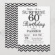 Invitation d'anniversaire surprise 60 ans avec Chevron noir. Noir et blanc. Anniversaire adulte. Invitation d'anniversaire pour homme ou femme. Pour une personnalisation plus poussée, veuillez cliquer sur le bouton "Personnaliser" et utiliser notre outil de conception pour modifier ce modèle.