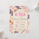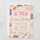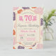 Invitation d'anniversaire surprise florale 70 ans. Roses roses violettes orange. Anniversaire femme, dame, fille. 13ème 15ème 16ème 18ème 20ème 21ème 30ème 40ème 50ème 60ème 70ème 80ème 90ème 100ème, tous âges. Pour une personnalisation supplémentaire, veuillez cliquer sur le bouton "Personnaliser" et utiliser notre outil de conception pour modifier ce modèle.