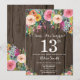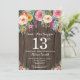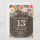 Invitation d'anniversaire surprise florale rustique 13 ans pour fille. Fleur florale aquarelle. Fond rustique bois campagne vintage rétro. Fleur rose, jaune, orange, violette. Anniversaire adulte. 13e 15e 16e 18e 20e 21e 30e 40e 50e 60e 70e 80e 90e 100e, tous âges. Pour une personnalisation plus poussée, veuillez cliquer sur le bouton "Personnaliser" et utiliser notre outil de conception pour modifier ce modèle.
