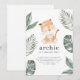 Un doux tigre aquarelle avec des feuilles vertes sur les côtés. Parfait pour votre fête d'anniversaire sur le thème du tigre !