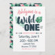 Une invitation à l'occasion du premier anniversaire à thème branché WILD ONE.