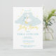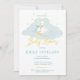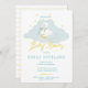 Une invitation classique au baby shower avec une illustration fantaisiste et dessinée à la main d'une maman et d'un bébé canard qui se baladent dans un nuage moelleux au milieu des étoiles. "Baby shower" est écrit à la main à travers la base des nuages. Tous les autres champs sont modifiables. Les couleurs de la carte sont : jaune, bleu, blanc. Convient pour une douche neutre pour le genre.