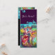 Invitation d'art raffiné colorée, élégante et vibrante. Danseurs de carnaval romantiques : figures de danse artistiques, fantaisistes et expressives, belle femme blonde en costume à plumes scintillantes dansant avec un jeune Arlequin avec des fleurs bleues au verso de la carte. Peinture à l'aquarelle dans des couleurs vives rose, fuchsia, vert, rouge, bleu, jaune, paillettes dorées inspirées de la Comédie de l'art (Commedia dell'arte) et du Carnaval de Venise. C'est également un beau design pour les faire-part de mariage, programmes, save the date, anniversaire, réunions, fiançailles romantiques, douche de mariée, occasions spéciales, fête de vacances, bal masqué de Mardi Gras, fêtes d'anniversaire. Sweet 16, bals de Quinceanera, célébrations du Nouvel