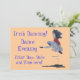 Un crayon de couleur et une illustration de stylo dans le style d'une jeune fille qui sautait en l'air, saute en plein milieu d'une danse irlandaise bouge et habillée de jupe traditionnelle et de veste rouge.
