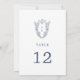 Ces numéros de table de mariages botaniques blancs et bleus de la Collection Daphné sont parfaits pour un mariage traditionnel. Le design simple mais classique présente un monogramme de crête royale élégant et intemporel avec des fleurs et de la verdure entourant les initiales du couple. La carte s'imprime à l'avant et à l'arrière (double face). Ajoutez chaque numéro de table dont vous avez besoin à votre panier individuellement.