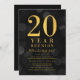 Invitation à la réunion de classe classique avec les mots "Réunion de 20 ans" en fausse feuille d'or contre un bokeh gris foncé illumine l'arrière - plan motif. L'invitation a un arrière - plan gris foncé derrière. Personnalisez cette invitation avec vos détails en remplaçant le texte de l'espace réservé. Pour plus d'options comme changer la police, la taille/la couleur du texte ou l'espacement entre les lettres, cliquez sur le bouton "Personnaliser". *Veuillez noter que le filigrane Zazzle qui apparaît dans l'aperçu du zoom n'apparaîtra PAS sur le produit imprimé final. © Bois de rose et agrumes