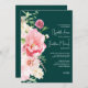 Invitation Dark Moody Emerald Blush Floral Script élégant