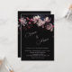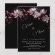 This dark moody romantic wedding invitation features light pink magnolia flowers on a black background. Bride and groom first names in an elegant classic calligraphic script.
