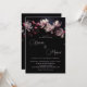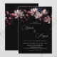 This dark moody romantic wedding invitation features light pink magnolia flowers on a black background. Bride and groom first names in an elegant classic calligraphic script.