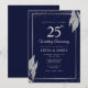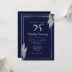 Invitation Dark Navy Blue Silver Leaf Wedding Anniversary