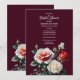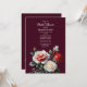 Elegant dark pretty red and pink white rose on burgundy background floral cottage core wedding bridal shower Invitation