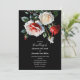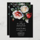Elegant dark pretty red and pink white rose on black background floral cottage core wedding Invitation