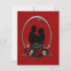 This stunning design is available in several colors and can be customized just for your special day. Featuring couple in black or white silhouette framed in silver and accented by roses, skulls, and spider webs for a classically Goth perfect for Vampire ou Halloween events.
