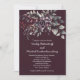 The florals are delicately layered, with silvery undertones that add a subtle shimmer against the deep backdrop. The overall design is vertically balanced and clean, allowing the botanical elements to frame the content without overwhelming it. It evokes a timeless charm—perfect for a celebration steeped in warmth and style.