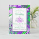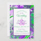 Cartes d'invitation de mariage uniques et abstraites modernes personnalisées avec une peinture numérique en marbre violet, lavande et vert.