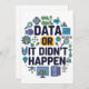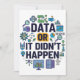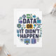 Célébrez la puissance des données grâce à ce design amusant et coloré, avec l’expression audacieuse Data Or It’t Happen. Entouré de tableaux, de graphiques, d’icônes codantes et de symboles de recherche, il est un clin d’oeil ludique mais intelligent au monde de l’analytique, de la science et de la technologie. Cette conception est parfaite pour les chercheurs, les chercheurs, les programmeurs et toute personne qui valorise la preuve et la précision. Il capture le charme geek d'une vie alimentée par les statistiques et la logique, le rendant à la fois attrayant et significatif. Que ce soit au bureau, à des conférences ou dans la vie quotidienne, ce design rappelle à chacun la règle ultime : pas de données, pas de preuve.