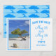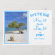 Cette belle conception a été créée à l'origine pour une invitation de save the date de mariage de destination. Maintenant avec un texte complètement modifiable pour n'importe quelle occasion. Il comporte un arbre divi divi penché par le vent d'Aruba. L'arbre se trouve sur de nombreuses îles des Caraïbes, mais à Aruba, les arbres poussent en pointant dans une direction sud-ouest en raison des vents alizés. Suivez les arbres pointant vers la plage où que vous soyez sur l'île.