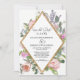Placez votre photo de fiançailles au dos, élégamment entourée de fleurs sauvages modernes et libres, comme un souvenir pour la famille et les amis. De magnifiques fleurs peintes à la main dans le style romantique de cottage anglais et de fleurs sauvages avec un cadre en faux strass en forme géométrique moderne en or rose crée une collection d'invitations de mariage élégamment simple. Thème intemporel, classique et chic, mais aussi contemporain et tendance. Parfait pour un jardin extérieur, un cadre botanique vintage, une ferme ou une grange, ou une célébration de style bohème. Thème de mariage élégant et romantique raffiné. Le fond est présenté en blanc, mais vous pouvez le changer en n'importe quelle couleur souhaitée. Un ensemble complet de produits est disponible pour assortir les mariages, les douches de mariée ou les fêtes d'anniversaire.