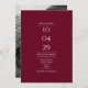Un design moderne et minimaliste comportant votre date spéciale et les détails de votre mariage, présentés dans une typographie classique et chic sur un fond bordeaux. Ajoutez votre photo préférée au verso. Conçu par Thisisnotme©