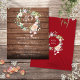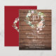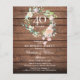 Avec une délicate guirlande florale aquarelle sur un fond de panneaux de bois rustiques, cette invitation chic et botanique de fête surprise pour le 40e anniversaire de mariage peut être personnalisée avec vos informations spéciales d'anniversaire de rubis. Le verso présente une guirlande florale assortie encadrant les dates d'anniversaire en élégant texte blanc sur fond rubis. Conçu par Thisisnotme©