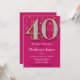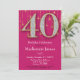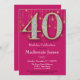 Une élégante invitation à la fête de 40e anniversaire en rose et or chaud, avec un grand 40 avec des diamants et l'apparence d'or ainsi qu'un rideau de citron de lumières d'or. Pour la femme de 40e anniversaire dans votre vie.